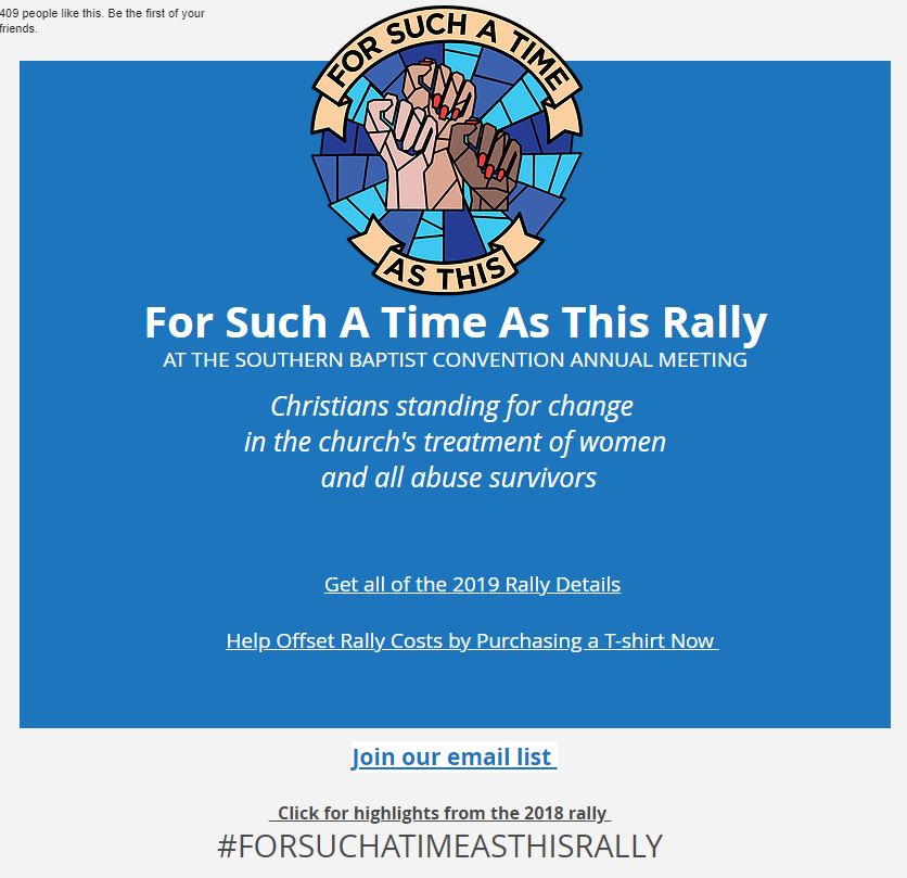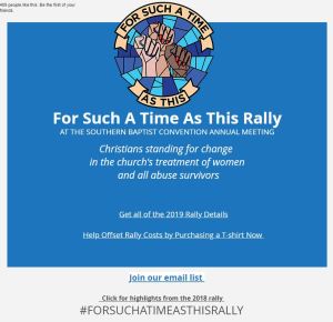 On June 11, 2019 during the Southern Baptist Convention annual meeting, you have a chance to make your voice known. For Such a Time as This Rally will be held June 11, 2019, at the Birmingham-Jefferson Convention Center in Birmingham, Alabama, and will be from 5:00 p.m. to 6:45 p.m.